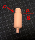 さて、ヘアスタイルを整える前にクリアしておかないといけない『大きな課題』が1つあります。 それは、ヘッドとボディをジョイントする為の『首』の改造です。 ゲリン少尉のほうはそんなに大変な作業ではありません。 オビツの女性素体には他社製のヘッドが付けられるよう、径の違うジョイントパーツがデフォルト以外に3つ付属しているのです。 (なんて親切なんだ!) なので、もともと付いているオビツヘッド用ジョイントをドライバーでバラし、ノアドの首径に合うジョイントパーツに付け替えるだけでOKです♪ 問題なのは、ガルマ様のほうです・・・。 カスタムドールの改造サイトをググって探してみたのですが、『オビツ男性素体』に『オビツ女性用ヘッド』をくっ付けたという例は全くもってありませんでした。(泣) こうなったら仕方ありません、自力でなんとかするのみです! フルスクラッチで新規に首を作る手も考えたのですが、今回は予算の関係上『有るもの』でなんとかしようという方向性でいきます。 とりあえず、オビツの男性素体には2種類の首パーツが付属しているので (もちろん、両方とも女性用ヘッドには合いませんが)これをなんとか利用できないか?と、しばしにらめっこ。 左の写真は完成した『首パーツ』なのですが、じつは境界線から上の『A』部分と下の『B』部分とは別のパーツです。 『B』は素体に付属していたオビツ男性用ヘッドを乗せる為の首で、『A』は他社製のヘッドを乗せるために付属しているもう1つの首パーツを分解して、その1部を取り出したものです。 この『A』のパーツですが、図の『C』のところがリング状に2.5ミリほど出っ張っています。 その出っ張りをナイフ&ペーパーで1ミリほどに削り、 最終的にプラモ用接着剤を使って境界線のところで接着して写真のような部品ができた次第です。 次に、ヘッドのほうにも手を加えます。 思いきって、デザインナイフで写真のような大穴をあけました。 穴の径は、さきほど作った『首』パーツの細い方(くびれた部分)の径と同じサイズです。 要は、 ジョイントさせるときにヘッドに首をぐりぐり突っ込んでいけば『くびれ』の部分でひっかかって首が抜けなくなるだろう・・・ という作戦です。 もしかして、オビツ男性素体にオビツ女性用ヘッドを付けたのは私が初めて? (・・・なんてことはないだろうけど) と思いながら、今回もハードルを1つクリアできてホッと一息です。(笑) では、次回こそヘアスタイルの調整を・・・(笑) |